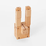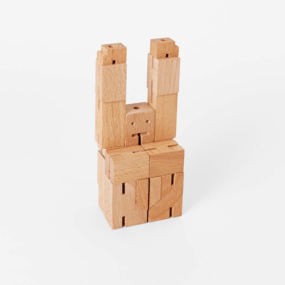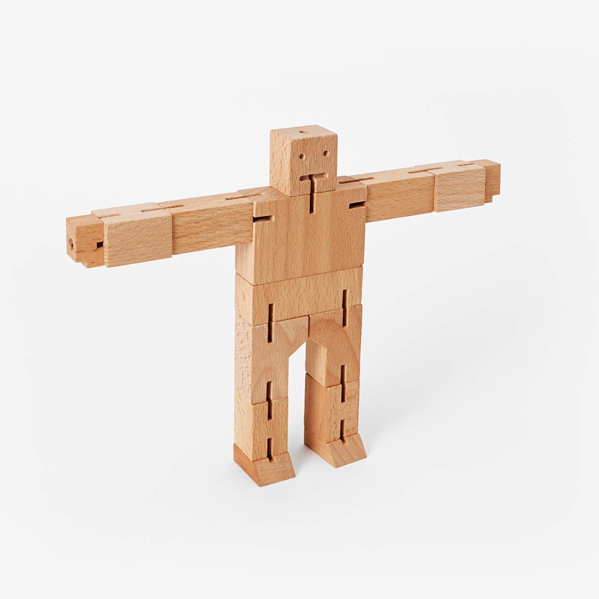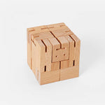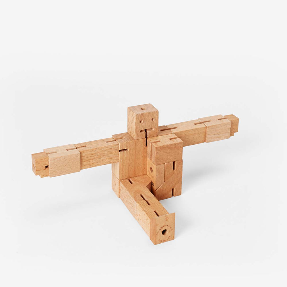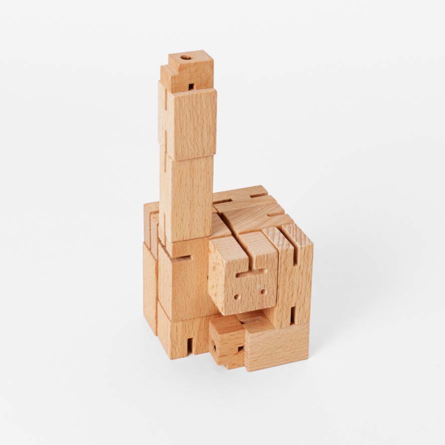 Toys robots are usually made of plastic and require batteries. Not this one! Inspired by the Japanese Shinto Kumi-ki puzzles, this natural wooden toy robot is a non-traditional take on the toy robot. The robot's powerful hardwood frame can hold dozens of poses and his elastic band muscles and durable wooden limbs make him resistant to breakage. When it's time for him to rest, he folds into a perfect cube. An enduring classic that will withstand generations of play. This friendly chap is crafted in multi-coloured yellow wood and makes a perfect gift for anyone!